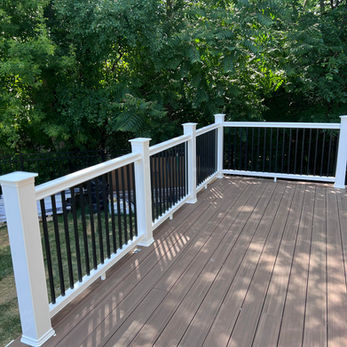 Tim and Jaime reached out to us for a deck rebuild. They wanted to completely redo their rear deck and front porch. We added 6’ additional feet to their rear deck and went with a composite decking and railing system for a maintenance free and long life.